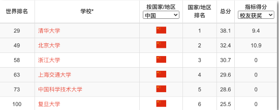 4-6名分别是上海交通大学、中国科学技术大学以及复旦大学。