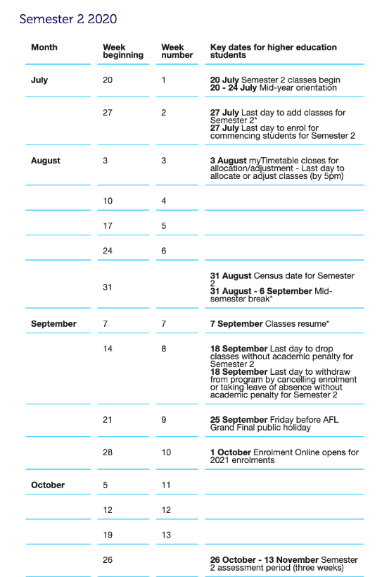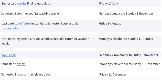 各所大学的第二学期已经陆续开课了,小编在这里给大家整理了维州6所大学的时间表,有需要的小伙伴可以记录一下哦~