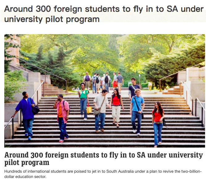 报道还称:东南亚的学生将在九月初乘坐新加坡的航班抵达阿德莱德,开启全澳的留学生返回试点计划。