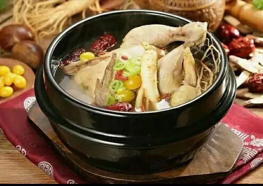 参鸡汤是韩国一道非常著名颇具特色的菜肴名汤,肉类食品和滋补类食品的完美组合,最具代表性的韩国公众料理之一。