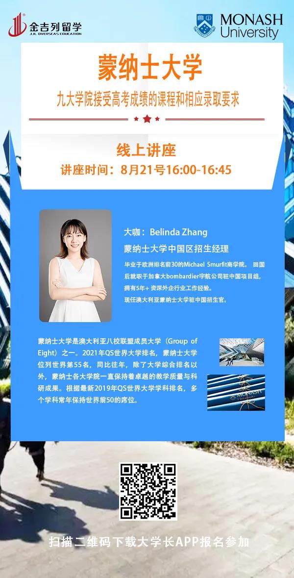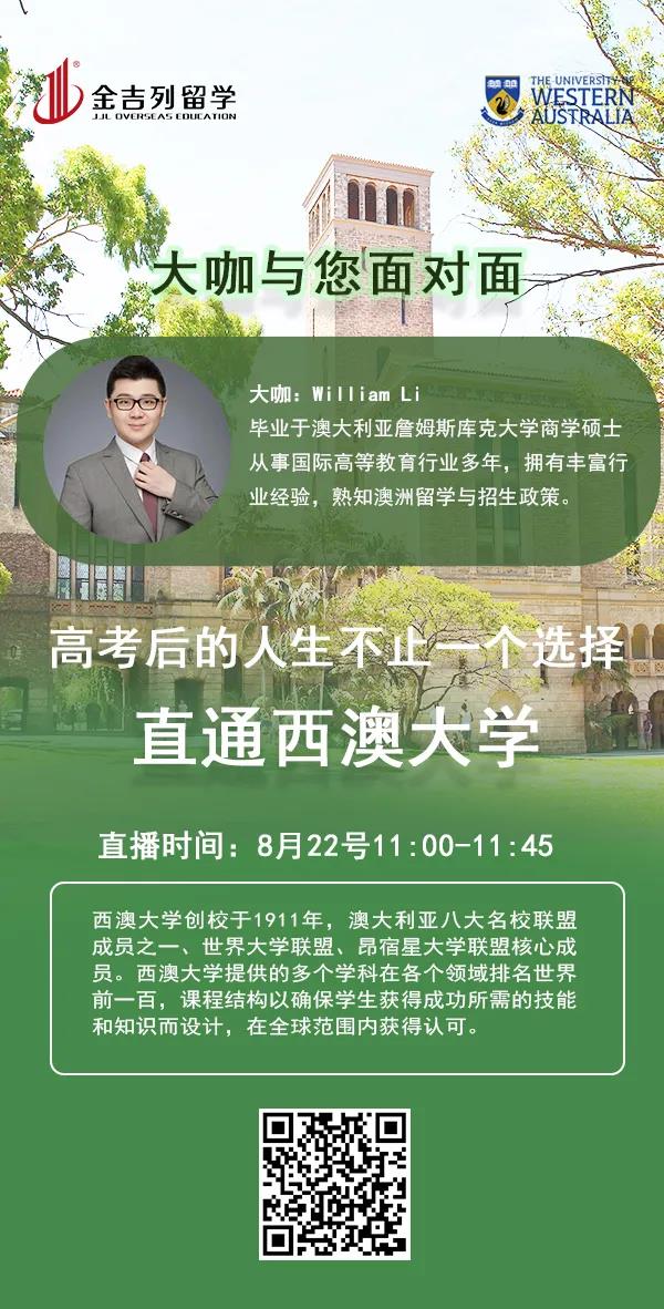 这八所学府 汇集了澳洲一流的师资力量 ,堪称澳大利亚高质量大学的代表。而且澳大利亚是世界上第一个颁布国际学生教育保护法的国家,确保国际学生的 正当权益,享受澳大利亚社会发展及物质文明带来的成果。 赴澳留学可以有多种专业选择和方式选择,毕业后可以有工作签证,就业机会多,起薪较高。 本次线上招生面试会中 ,将由各位大咖带您分析未来热门行业,为您提供清晰的发展规划解析。无论您处于学习的哪一阶段,均可以足不出户就与院校大咖零距离沟通,获取澳大利亚最新留学资讯,获得最适合您的留学方案!