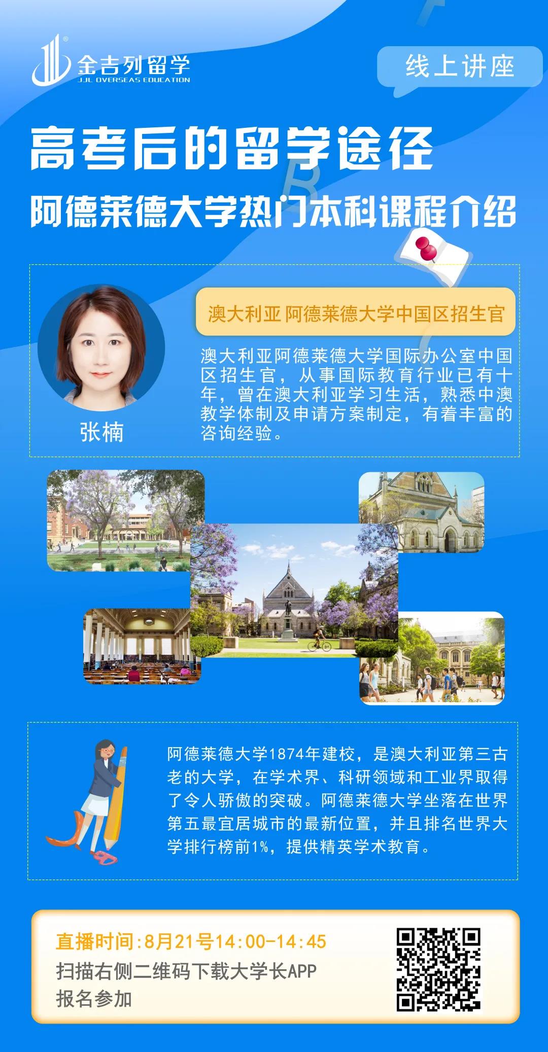 众所期待的澳洲八大名校展终于来啦! 澳大利亚南澳教育推广署在8月21日-8月22日携手八所澳大利亚顶尖一流学府与您在线“面对面”!