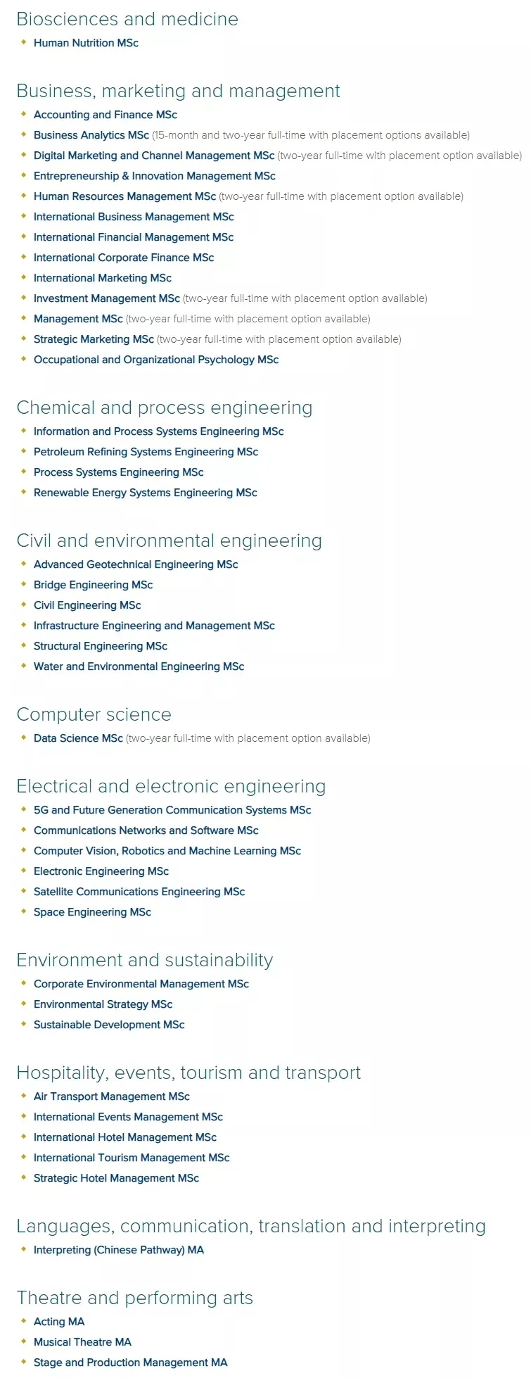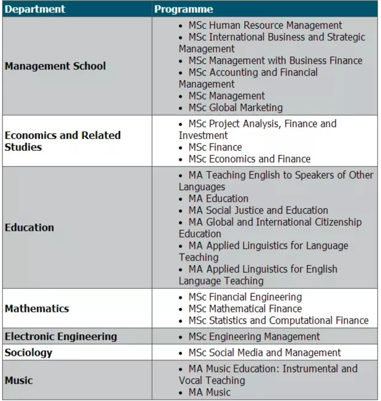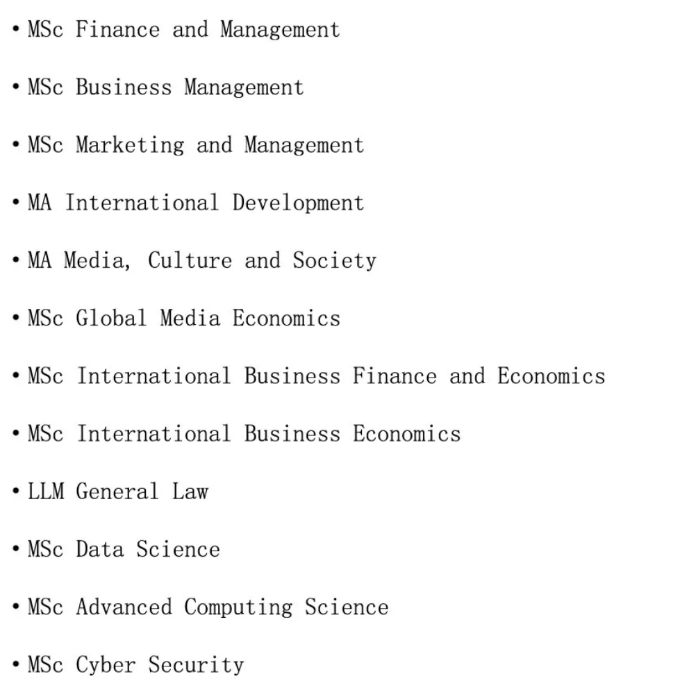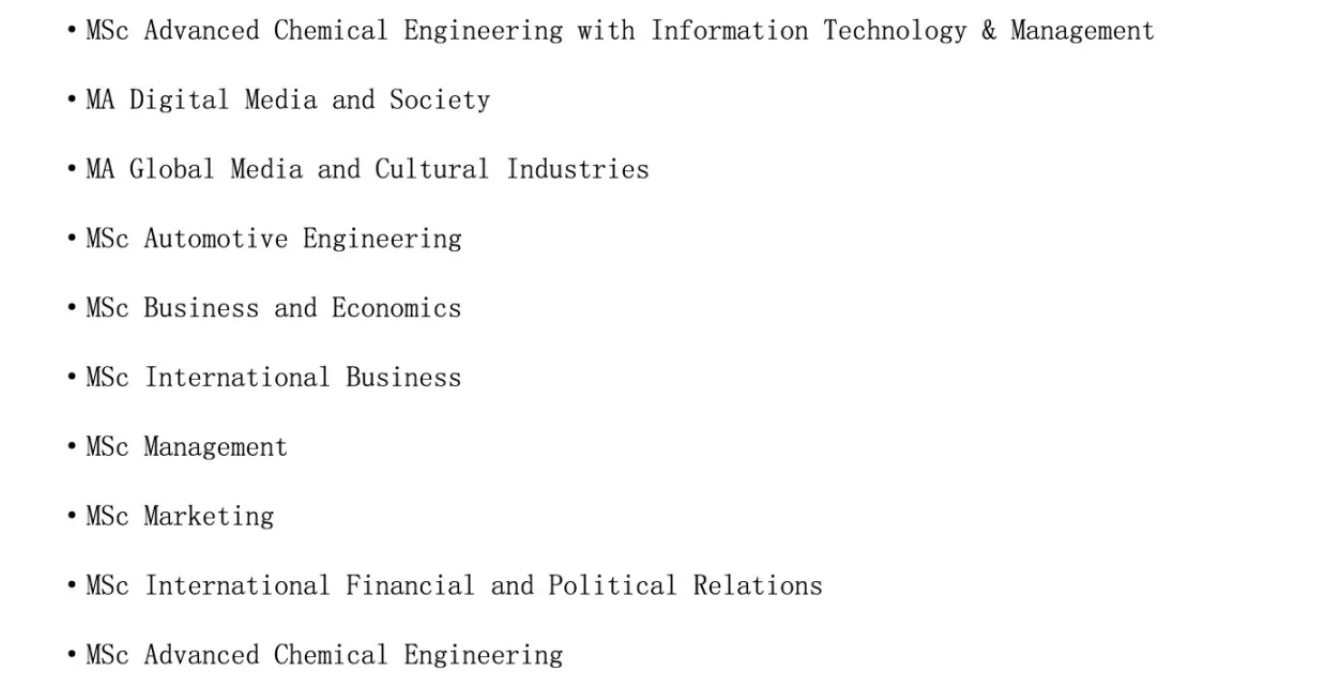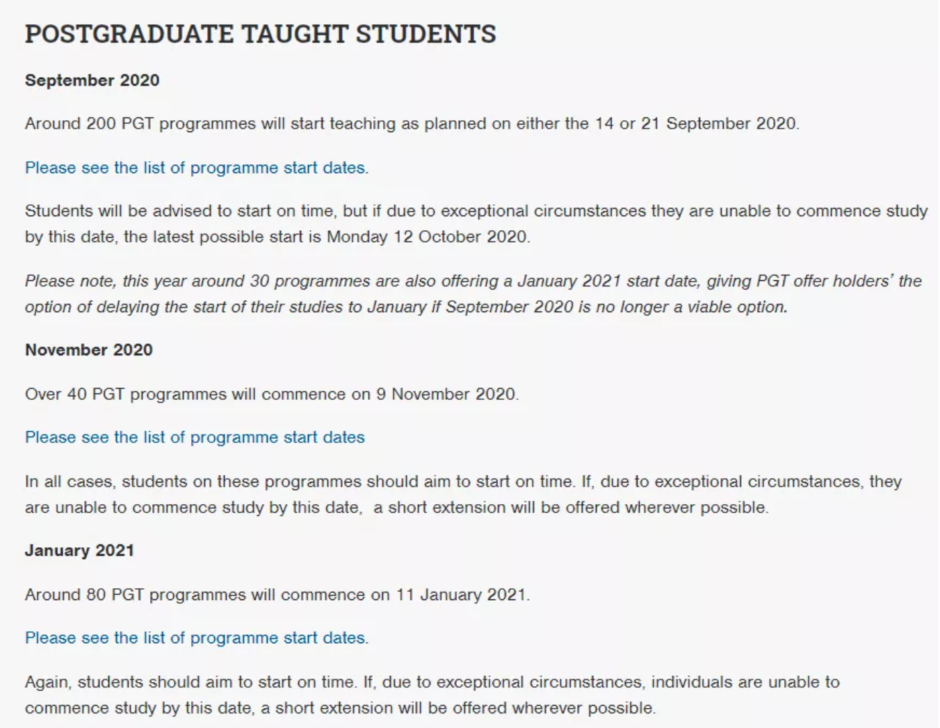 2021年1月新增设的研究生课程将已经于6月15日开放申请,如已获得2020年9月课程offer的学生考虑延期,可直接联系amissions@le.ac.uk办理(部分)。