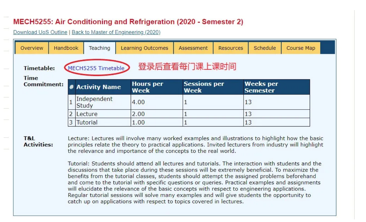 Engineering 的学生可以登录 CUSP:cusp.syney.eu.au 查看毕业要求、课程的介绍以及上课时间表 ▼