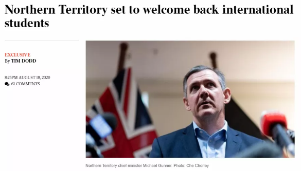 而且州长表示:其他州的国际学生,也可以先来北领地进行隔离!然后再飞往各州。