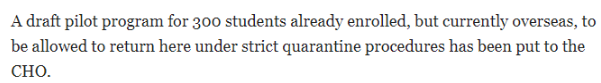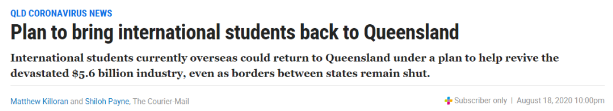 根据计划, 昆州预计会接回300个留学生主要面对那些已经enrol但是困在海外的在读生,目前这个计划已递交给昆州首席卫生管审核中。