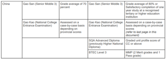 以受中国留学生喜爱的商科来举例,在满分750的省份,Bachelor of Commerce和Bachelor of Business Aministration这两个专业高考成绩达到548分就能申请,其他专业则需要高考成绩达到551分。IT专业需要成绩达到525分及以上。