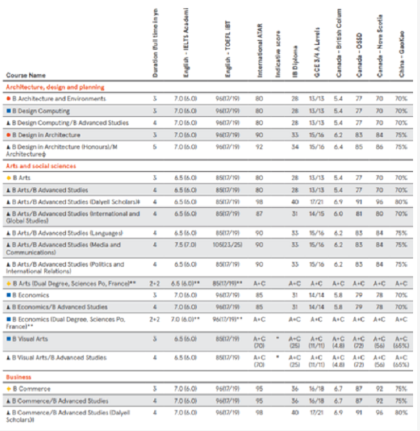 如上图所示,阿德莱德大学也根据不同的省份给出了具体的分数线,普遍录取要求为总分的65%。