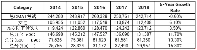 虽然GMAT考试的整体成绩有所下降,但在过去5年里,考到700分或700分以上的学生比例增加了16.3%。