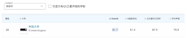 在2020年QS世界大学排行榜&mash;&mash;英语语言和英语文学中,利兹大学排名32。