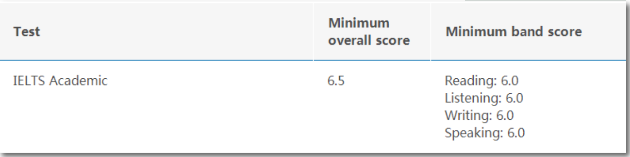 研究生学位,雅思要求 6.5-7.0 分 (小分6.0分) ;