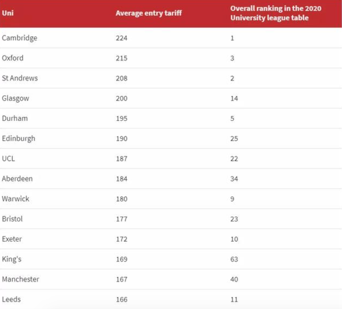 现在我们比较幸运,《卫报》根据ucas入学成绩,按照入学难易程度,对每一家大学进行了排名。不看不知道,原来华威比阿伯丁都好进… …