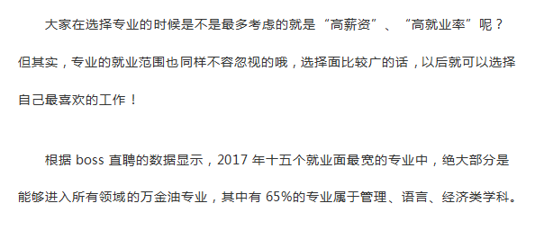 大家在选择专业的时候是不是最多考虑的就是“高薪资”、“高就业率”呢? 但其实,专业的就业范围也同样不容忽视的哦,选择面比较广的话,以后就可以选择自己最喜欢的工作!
