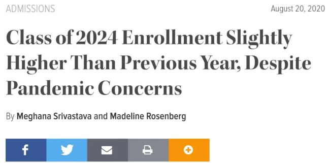 此外,康奈尔大学2020年秋季转学的学生人数比去年增加了134人。女性转学生比例下降了约8%,国际转学生的比例下降了近2%。