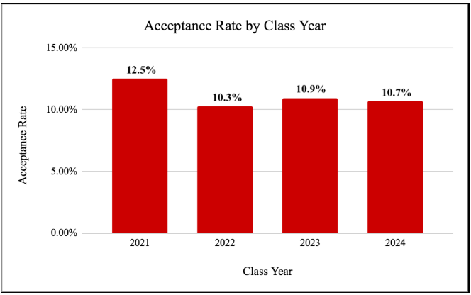 根据学校发布的消息显示,2024届,康奈尔大学收到了51500份申请,比去年多了2000份左右。学校的最终录取率为10.7%,相较去年的10.9%有些下降。尽管如此,今年学校的班级规模还是略高于去年。