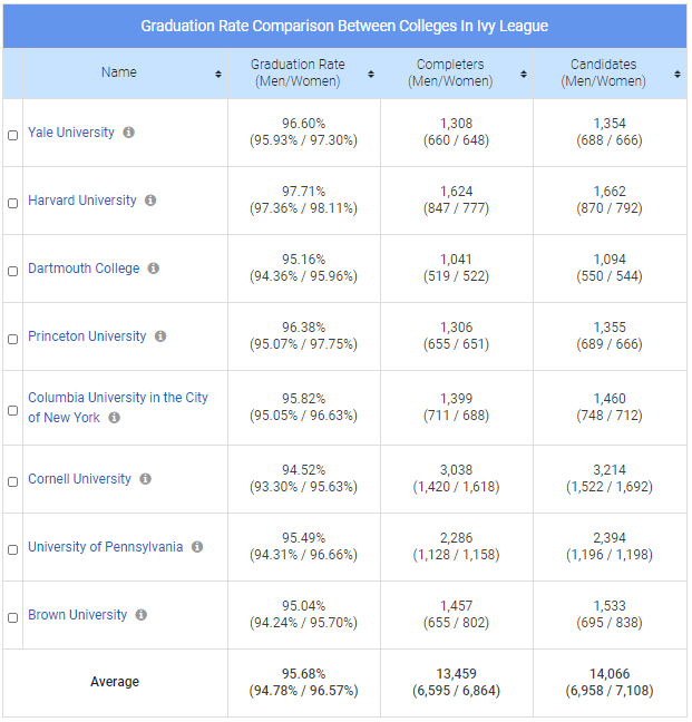 虽然被叫做“康村”,但学校的压力可一点都不小。据统计,美国常春藤联盟8所学校的4年本科平均毕业率为95.68%。而其中,就数康奈尔大学的毕业率最低,为94.52%!学校也因此成为了“最容易进,但却最难毕业的藤校”。