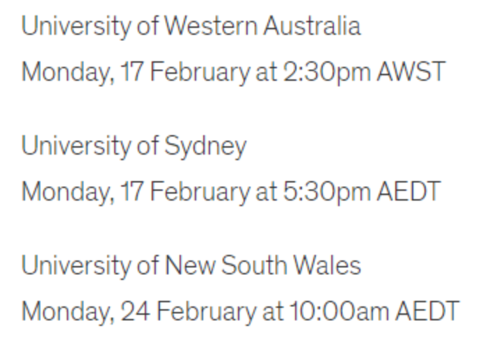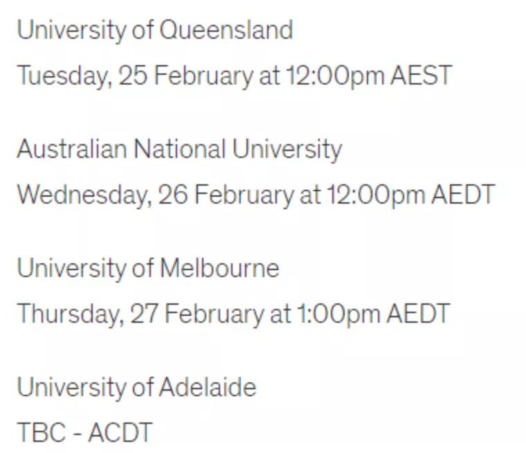 2020年McKinsey秋招更是在昆士兰大学、悉尼大学、墨尔本大学、新南威尔士大学、澳洲国立大学、阿德莱德大学、西澳大学等院校举办了Target School Events招聘会。