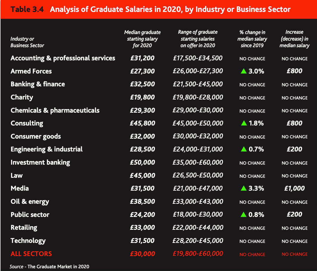 据报告显示,对2020英国应届毕业生薪酬最高的行业是投资银行业,高达50k;其次说顶级战略咨询公司,已将毕业生工资提高至45800英镑;第三名为法律行业。