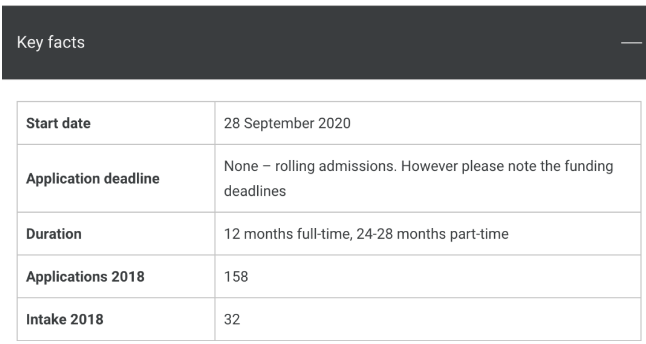 项目的入学门槛很高,官网公布的录取要求为英制 2:1 学位,并提供富有竞争力的 GRE/GMAT 成绩。
