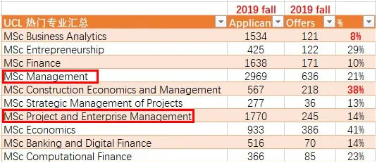 UCL热门专业2019年录取数据