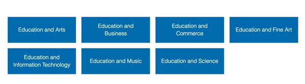可选择的双学位课程包括:人文学、商学、经济学、美术、信息技术、音乐以及理科。