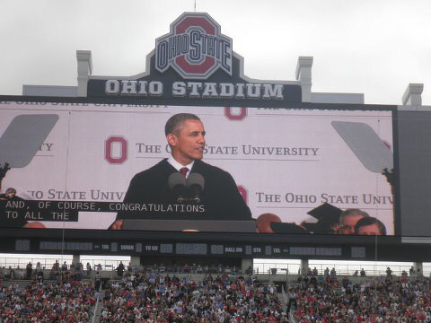 奥巴马2013年做毕业演讲。我本人离奥巴马最近的一次是他2012年来学校的Oval做演讲拉选票,演讲的时候离他不到50米远。 这是我为母校OSU做braning的一套说辞。我其实都是一边说一边心里呵呵。其实真正在OSU,有多精彩多NB,远远不是这几句冠冕堂皇的话可以概括的。既然我是来谈体验的,那么我来多谈谈生活。分点说吧: 1、“O-H! I-O! Go Buckeyes!” 作为OSU的一员,从进入学校的那一刻起,我们就把自己和俄亥俄州,和OSU融为了一体。无论你走到美国哪里,高喊一声&rquo;O-H!&lquo;,总会有人回答你&rquo;I-O!&lquo;,没错,美国各地的俄亥俄人都为之自豪,为自己是Buckeye(学名七叶树的果实,俄亥俄的象征,OSU运动队伍的名称)自豪。 以俄亥俄人为代表的美国中西部人痛快豪爽,热情好客,有时还有点彪悍和疯狂,如果比较的话可以认为是中国的山东人。即使我们是外来的留学生,也丝毫不妨碍我们成为其中的一员,只要是来OSU读书,都会被包容接纳成为其中一员,一起疯狂着。 可能大家要问,说了半天,你们到底为了什么自豪和疯狂。在美国的大学,毫无疑问,是Football橄榄球。 作为美国传统体育强校的OSU,拥有者一支强大的橄榄球队,历史上多次获得全国冠军,其与University of Michigan的百年宿仇更是为人们津津乐道。说历史都远,就说我在校的时候,2012年和2013年两个赛季Ohio State Buckeyes保持常规赛全胜战绩,只可惜在2012年底的big ten决赛中惜败,就差这一场就能杀入全国总决赛。我曾经到Ohio Staium看过两次主场比赛,10万人的体育场哪,那叫一个壮观。比赛本身也是精彩异常,到了紧张时刻令人窒息。再加上题主提到的全球最棒的Marching Ban的演出,太值回票价了。 讲到这里,我不得不佩服美国的大学文化和local文化,让每个地域的人们都有精神寄托,慢慢将学校和运动和自己的家乡三位合一,为之自豪和骄傲。这样下来,人们对自己家乡的热爱被实体化、市场化(我们中国人对家乡的热爱其实很抽象很模糊),学校也得到了足够的支持,学生们有了归属感(虽然我们是中国人,但是走到哪里,只要说自己是OSU的学生,都会得到当地人的照顾和狂赞)。 这次Marching Ban表演的视频:俄亥俄州立大学行进管乐队:好莱坞电影汇演。我当时正好在现场拍的,太精彩了太震撼了。加勒比海盗这一段,轰掉的正是U of Michigan的大船。 迎战U of Michigan前传统的跳镜湖的活动,11月份飘着雪跳进冰冷的湖水里表示必胜决心。我2012年底跳了一次,真是冻死爹了。不过当晚很high很high。 毕业时的2014届毕业典礼。Ohio Staium十万人体育场。 2、Columbus和OSU Columbus这座城市,几年前我申请的时候,根本就不知道。一般这种州首府的地方都不太出名,也没有什么NBA球队,所以中国人很少知道。 其实,Columbus是全美第15大城市,整个城市基本分成两大片繁华区,一片是传统的Downtown,另一片就是OSU。Columbus是美国有名的文艺范儿城市,充满了闷骚的艺术家和文艺青年。在当地有名的High街上,有一段叫做Short North,有很多文艺画廊和艺术品小店,以及酒吧。可以说,在这里生活是很舒适很惬意的,非常适合你潜下心来做什么事情。这里的物价也不高,风景又很好,没有大城市那么令人窒息的节奏和通勤。 Columbus也不闭塞,周边有Inianapolis,Pittsburgh,Clevelan,Cincinnati,Detroit等大城市,都是2、3小时的路程,Chicago也不过开车5个小时的路程,想去哪儿玩玩也不费力。 学校也经常会请来各种各样的人,举办各种各样的活动,大家寻找各种理由疯狂。可能很多人说,哎,美国大学不都这样么。话虽这么说,但是OSU的确是全美有名的爱活动,比一般学校要活跃的多。我个人认为,有这样的氛围,其实对我们从中国来取经的留学生来说再好不过了,你能够尽快的融入美国文化,感受其中的精髓,放松被含蓄的中国文化压制的自己,对个人的成长和视野的开阔都很有好处。 学校每年会请来一些乐队做免费演唱会。这晚是One Republic做演出,现场版的Counting Stars太high了。One Republic当晚最逗的一句话是,演唱会唱到一半,主唱整了一句, “For those who just came in, we are one republic, not one irection…” 笑尿了。 学院里的万圣节Party。最左是本人cosplay小丑,献丑了。内个,什么,我们班女生多男生少就留下了这么一张男女比例悬殊的照片。为了保护姑娘们,就传这张拍糊了的吧。 热气球节。其实这个可能全美巡回哪儿都有,不过我发现Columbus人对这种东西特别热衷。确实挺好玩儿的。 Columbus也是一座很有历史的城市。Downtown有很多历史建筑,教堂,还有一个德国村,German Village,像欧洲小镇一般,很漂亮。 毕业前和Kroger合影。Kroger是Ohio-base的连锁超市,没了它,叫我们怎么活。推荐Kroger的自有品牌的BigK的Orange汽水,简直就是健力宝。我们都叫它&rquo;逼K&rquo;,天津范儿。 半夜饿了,去Cane’s来套Drive through吧。最最美味的美式鸡柳连锁。 到了周日的Sunay Fun ay,来high街的short north随便挑个bar,喝一杯吧。 3、学校和学习 因为题主问体验,所以讲了好多生活上的精彩。不过看过上面两点后,我觉得大家很可能觉得我们去那里就是个玩了。所以还必须得说说学校本身。 其实作为一个研究生,我对OSU的本科还真是不甚了解。可能也就谈谈我对Fisher商学院的认识吧。 我们在中国申请学校,都是看综排。OSU的本科在新闻周刊的排名可能也就是全美50多。我曾经和我的host family讲这个事,他们十分惊讶,说,OSU那可是全美最好的学