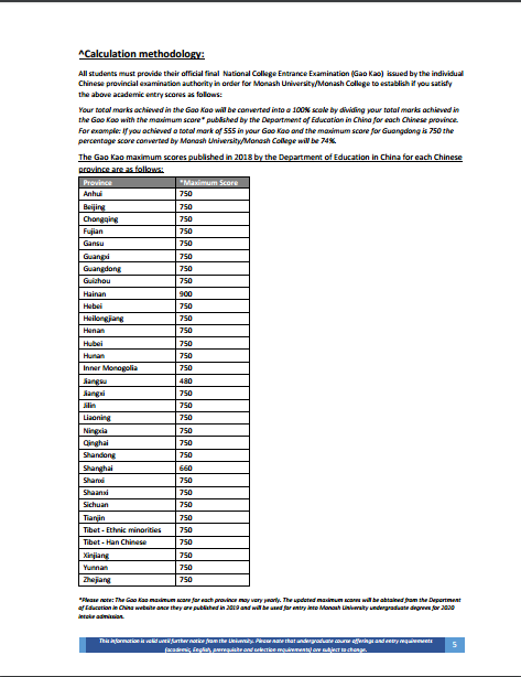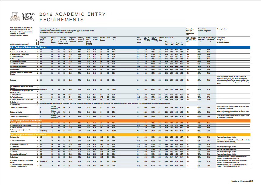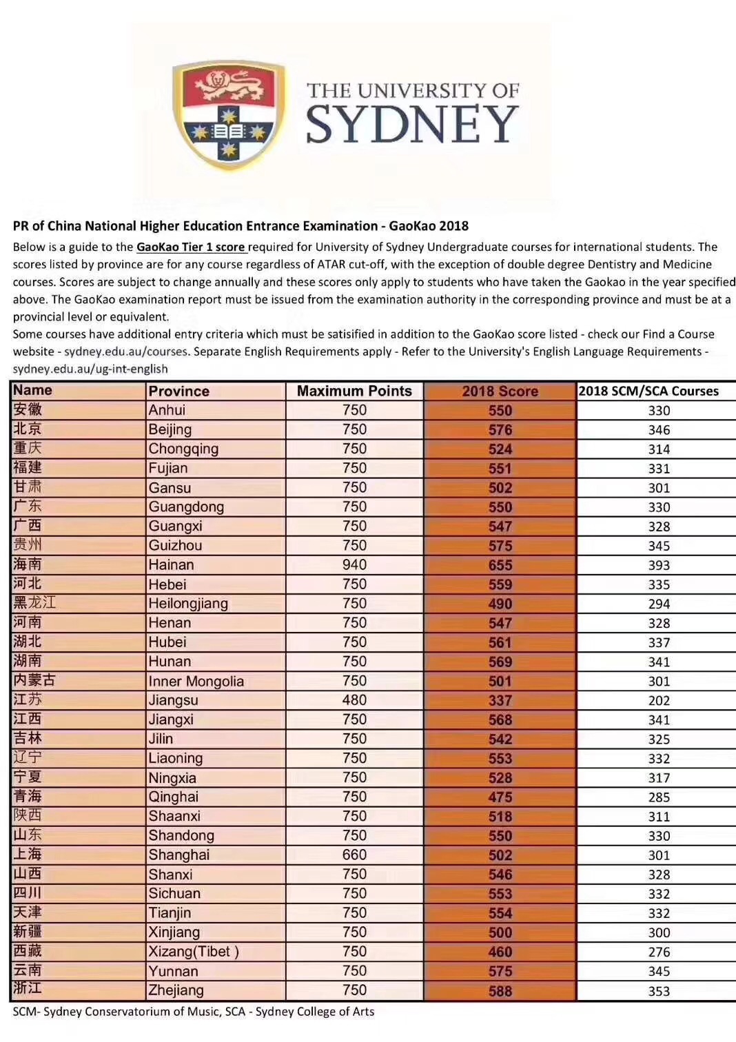 目前澳国立大学 新南威尔士大学 悉尼大学 莫纳什大学和悉尼科技大学已相继发布了2018年最新的高考直录要求,除了满足高考直录分数之外,学生还要学习雅思,雅思要求:总分6.5-7.0(单项不低于6.0)以下为学校的要求