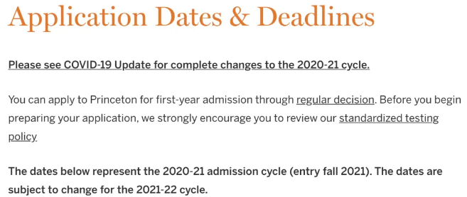 ▲取消今年的早申请计划:全部调整为2021年1月1日常规申请(Regular Decision)这一个申请截止日期,申请出结果时间为2021年4月1日。