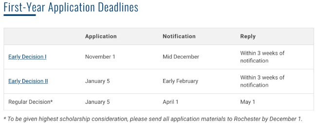 罗切斯特大学ED1申请的截止时间为11月1日,申请结果将于12月中旬公布;而新增的ED2申请截止时间和常规申请截止日期一样,都是1月5日。对于喜欢“罗村”的同学来说,这也是进入梦校的一次大好机会!