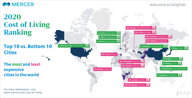 说起留学,往往大家的第一反应就是美国、英国生活成本高。不过放眼全球,美帝和腐国的城市生活成本真的不算高! 前段时间,全球最大的机构投资顾问公司美世咨询公布了 2020年城市生活成本排名 。