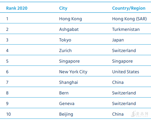 先来看看全球生活成本排名前10的城市是哪些叭: