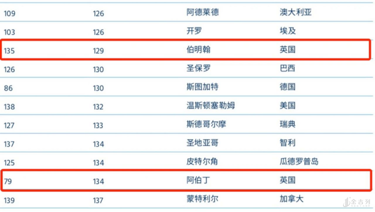 至于英国的其他城市,仅有4个上榜,并且一直翻到一百名开外,才能看到它们的身影。