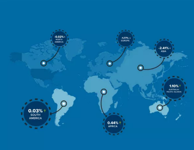 在全球范围,除非洲、南美洲和澳洲以外,其他洲留美学生人数均有小幅下降。