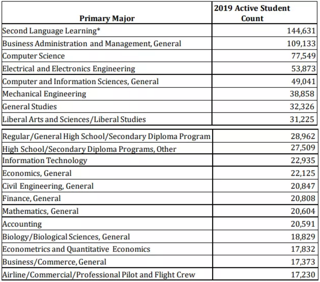 本年度,共有 792,281 (52%)名留学生攻读上述20个热门专业。