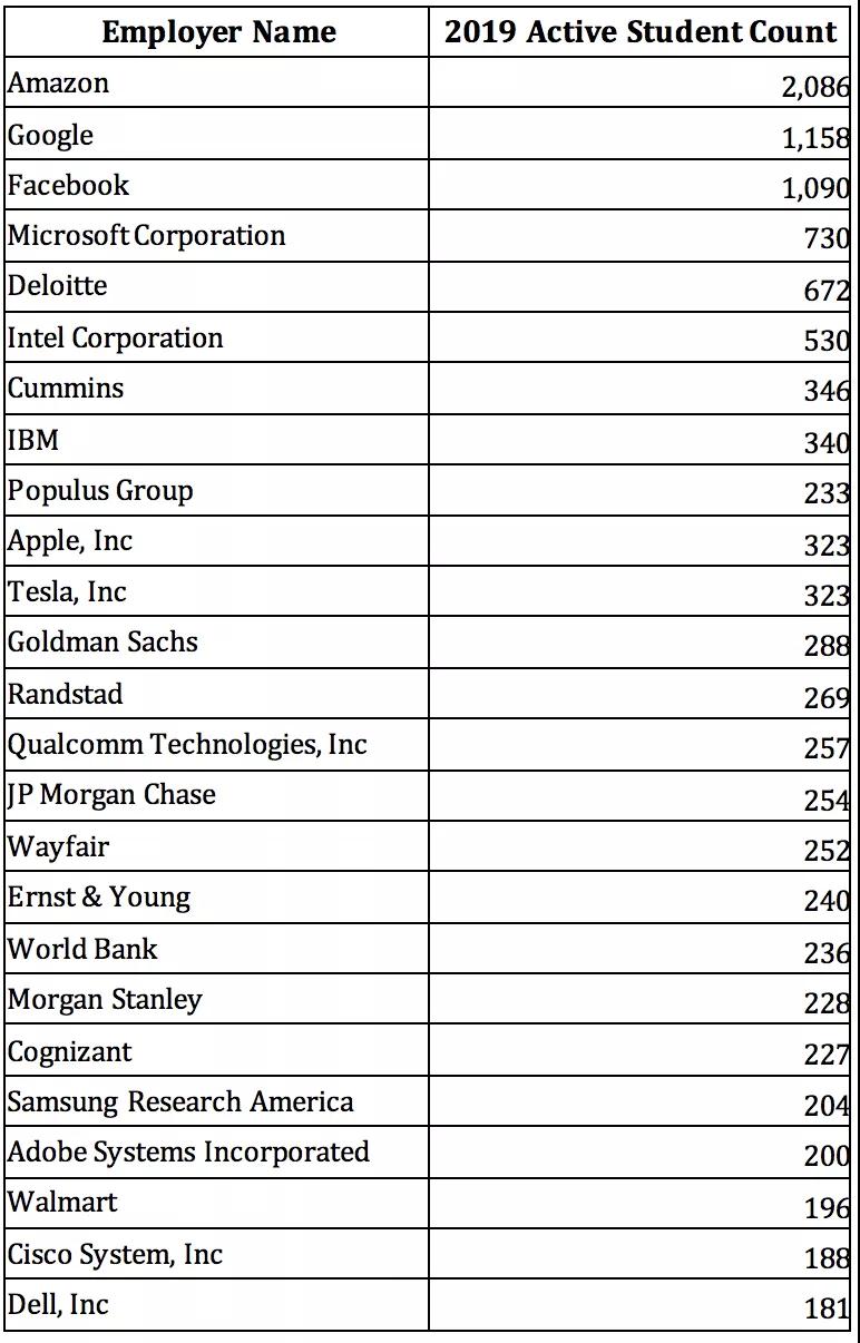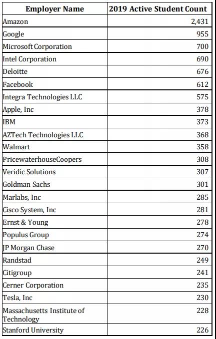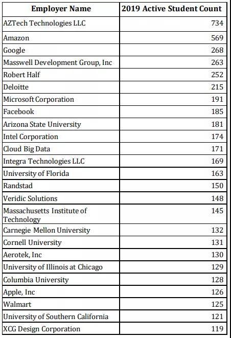 2、聘用STEM OPT学生数量最多的25位雇主:
