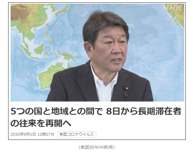 9月8日开始,恢复 马来西亚、柬埔寨、缅甸、老挝以及中国台湾 等5个国家和地区的企业驻在员等长期滞留者的往来。