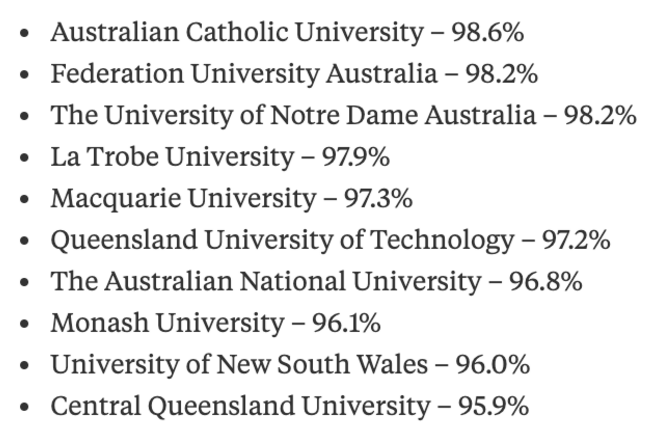 Australian Catholic University– 95.5%
