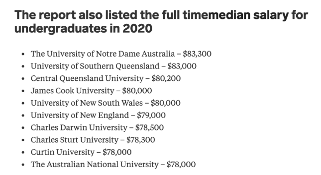 对于本科生来说,全职工作的薪水中位数从2017年的60,000澳元增加到2020年的75,000澳元。
