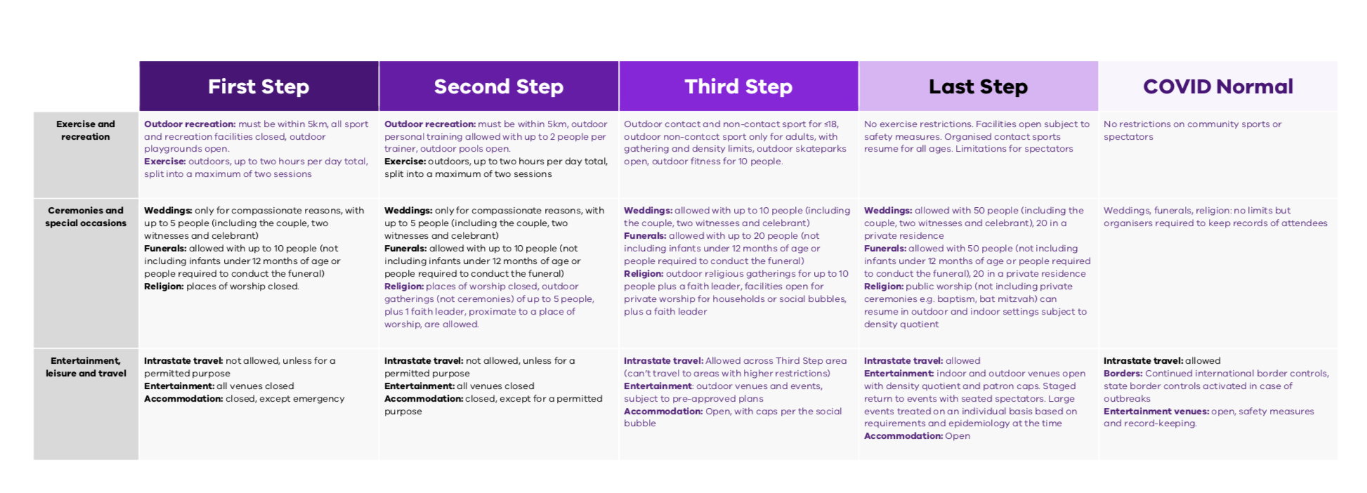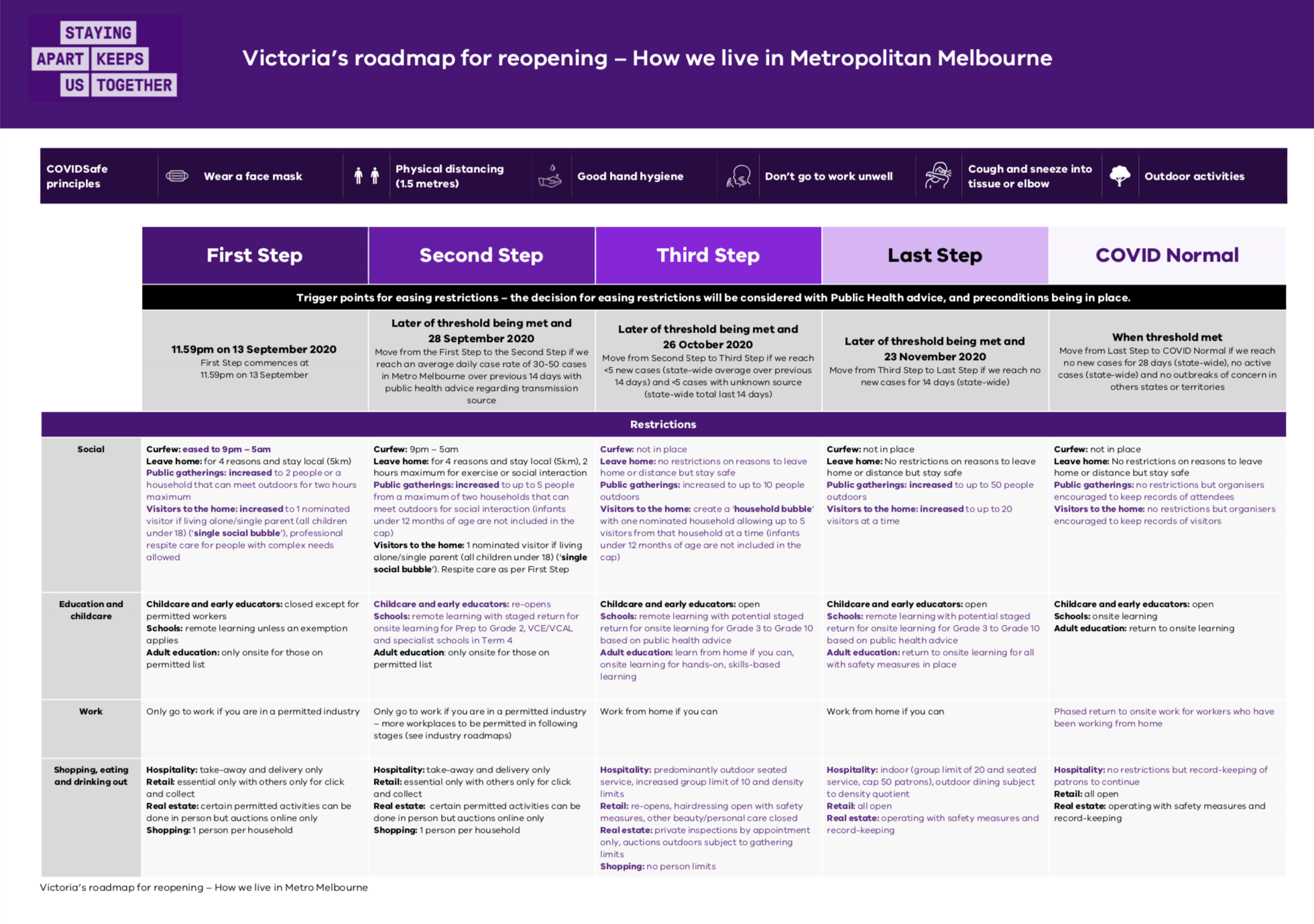 如果14天内的每日平均病例数量少于5例,而卫生当局建议可以实施的话,那么维州将实施以下措施: