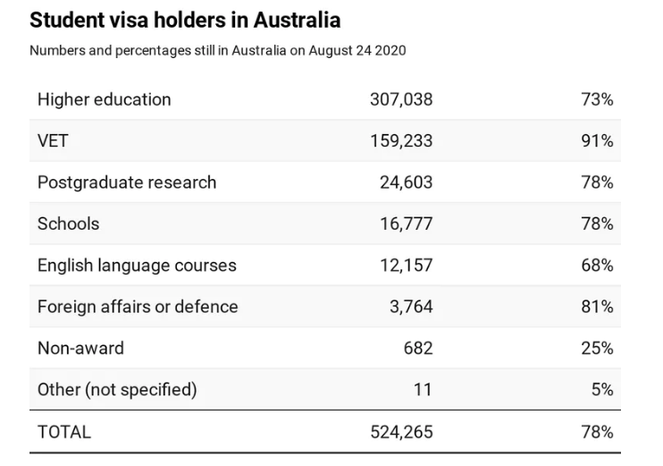 然而,根据内政部提供的数据,78%的留学生在疫情期间留在了澳大利亚,也就是说截至八月底,524000名留学生还留在澳大利亚。