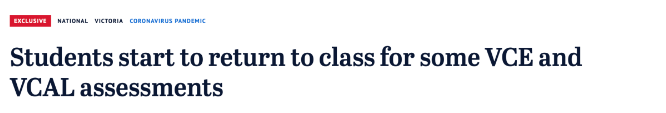 学校被告知,如果无法在家中合理完成VCE和VCAL学科的评估和课程,则可以恢复现场授课。
