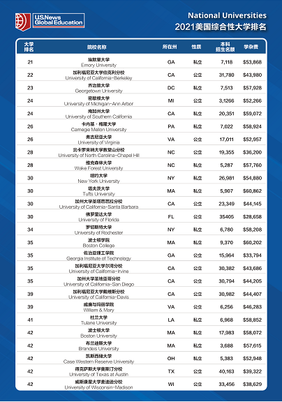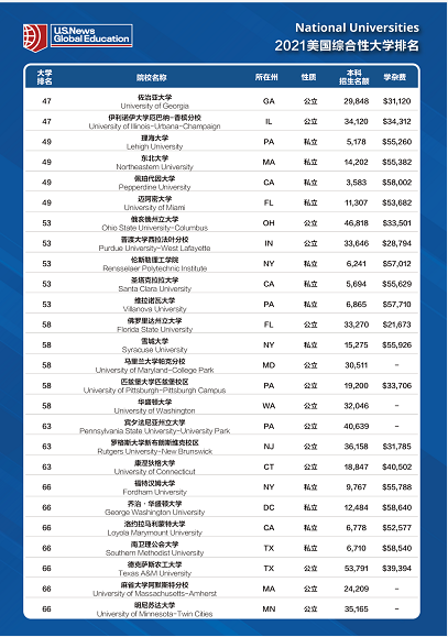 TOP50的学校中,几个公立学校有小幅度提升,包括UTA,UWM,UGA和 UIUC。 而迈阿密大学的回归,也让人欣慰,毕竟UM除了去年外,几乎都是TOP50的学校。
