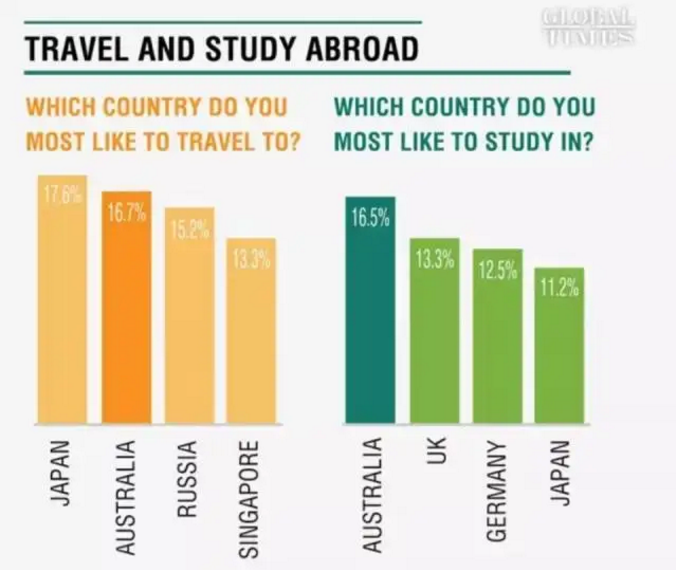 调查结果显示:中国受访者会选择澳洲作为留学首选国家