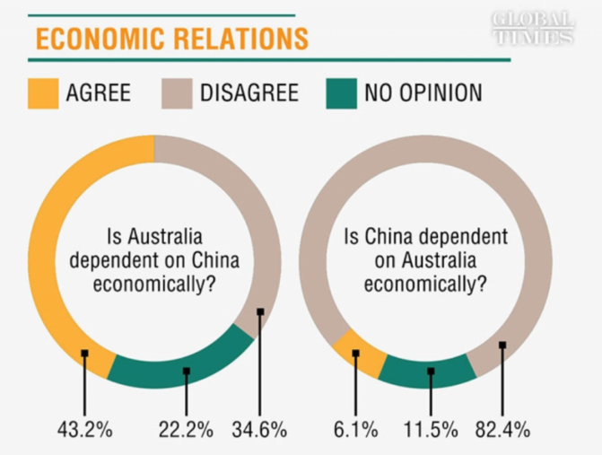 而 82.5%受访者,认为中国在经济上不需要依赖澳洲。