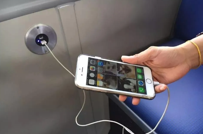 在巴士上手机没电了,充电口就在身边。