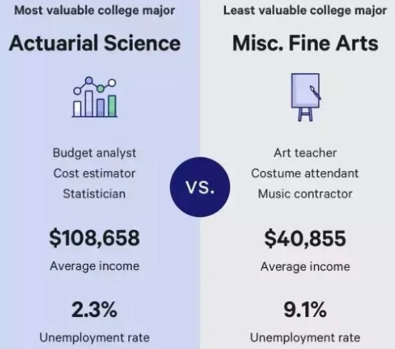 精算之所以成为排名第一的专业,并不是因为这个行业收入高或者稳定,其实精算的失业率相较其他STEM的专业算是稍微高一点的,但是精算比起STEM大部分专业,这个行业并不很需要更高的学位。