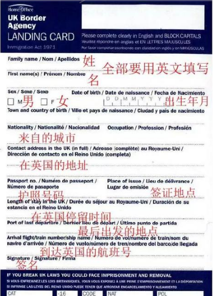 最好在飞机上就填写完毕哦,可以节约时间,早点出关,早点入境英国