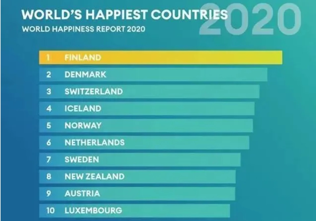 今日,联合国公布了2020年的《世界幸福指数报道》,