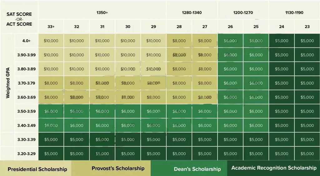 那 SAT 、 GPA 等标化成绩到底为什么很重要,有多重要呢?在这篇文章中,将向你展示一些基于 ACT 或 SAT 分数的大学学术奖学金(工作经验、所获荣誉、家庭背景等因素不在讨论范围)。