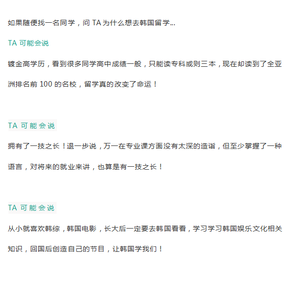 如果随便找一名同学,问TA为什么想去韩国留学...